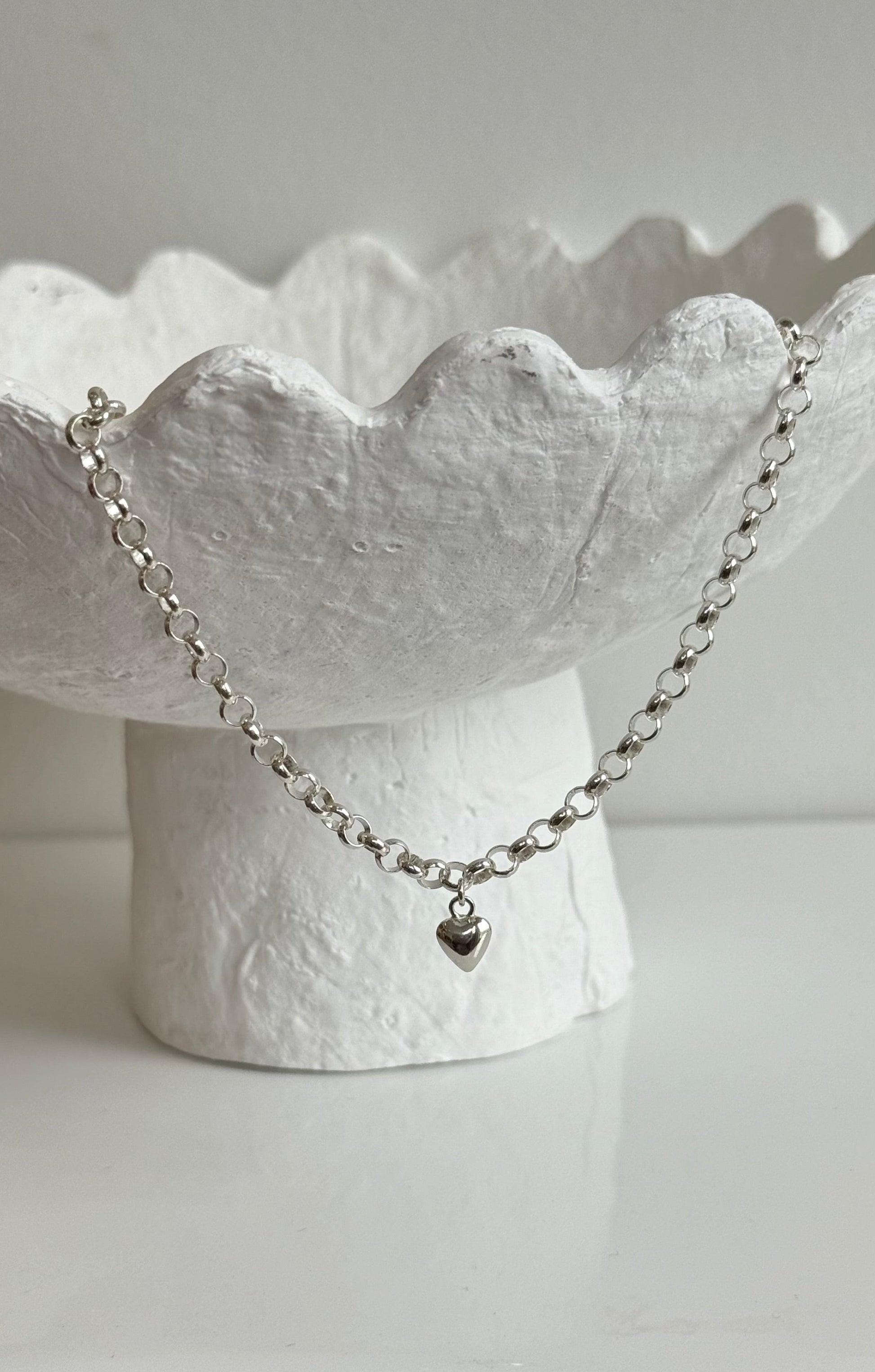 Hand finished Sterling Silver 3mm Rolo chain with a sweetheart charm on an 45cm length chain and sent in a beautiful gift box.